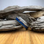 Blue whisky barrel and replicated meteorite shaving inlay.